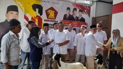 Ketua DPC Partai Gerindra Trenggalek Adip Fatoni menyerahkan kambing TRENGGALEK MAKNAJATIM – Ada yang berbeda…