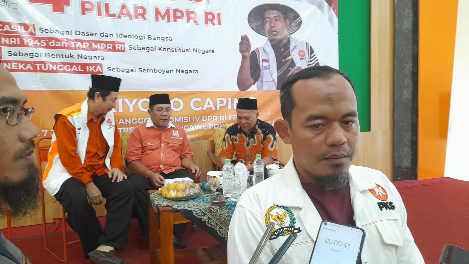 Foto ; Boby / Riono Caping anggota DPR – RI, saat wawancara dengan jurnalis, usai pemaparan Sekolah Kepemimpinan ( SKP) di aula DPD PKS Trenggalek.