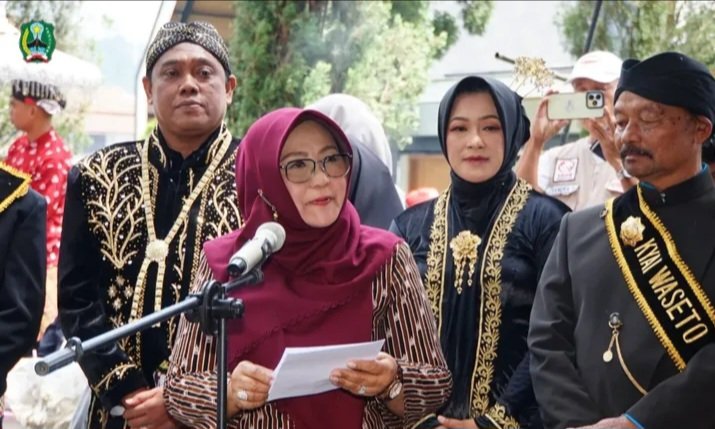 Foto : Prokopim Mgt / Bupati Magetan Nanik Sumantri saat menyampaikan pesan saat upacara Labuhan Sarangan