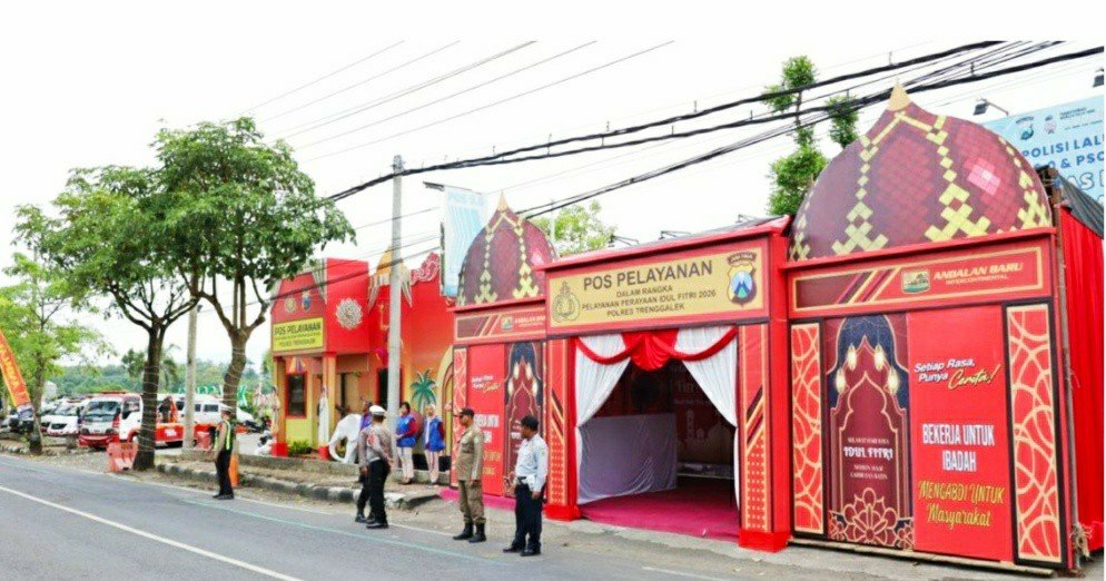 TRENGGALEK MAKNAJATIM – Mendukung kelancaran Operasi Ketupat Semeru 2026, Polres Trenggalek mengoperasikan Pos Pelayanan Lebaran terpadu di Jalan Soekarno-Hatta, tepat di depan Agropark Trenggalek.