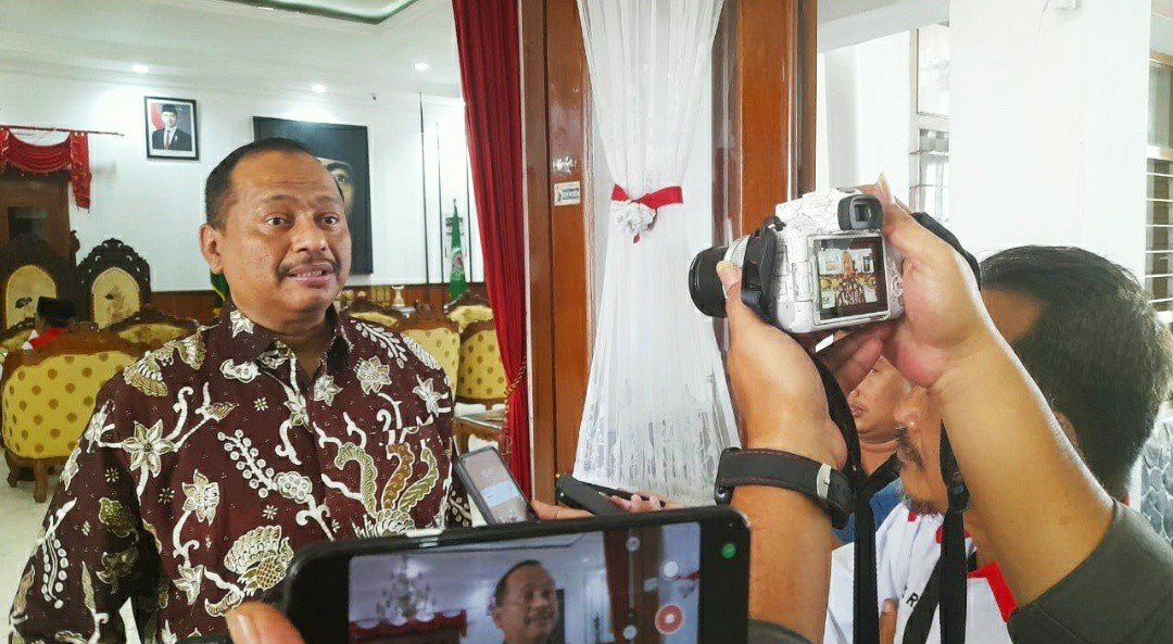 Foto: Boby /Ketua Umum Komite Olahraga Nasional Indonesia (KONI) Jawa Timur, M. Nabil saat wawancara dengan awak media