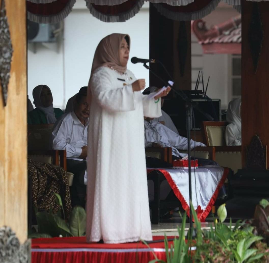 Trenggalek,Maknajatim – Peringatan hari santri tahun 2024 bertempat di halaman Pendopo Manggala Praja Nugraha, sebagai Irup Penjabat Sementara (Pjs.) Bupati Trenggalek, Dyah Wahyu Ermawati, Selasa (22/10/2024).