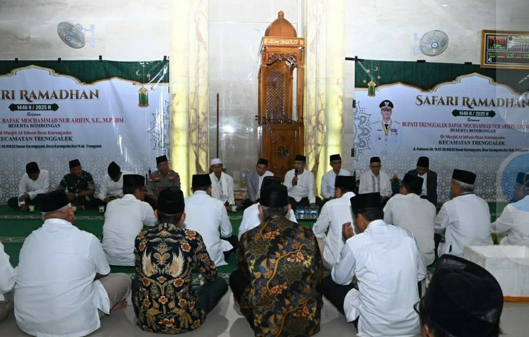 Sekretaris Daerah Edi Supriyanto bersama forkompinda dan Wakil Ketua DPRD Trenggalek Subadianto, melakukan Safari Ramadhan 1446 H di Masjid Al Ihsan, Desa Karangsoko, Kecamatan Trenggalek, Kabupaten Trenggalek, Rabu (12/3/2025).