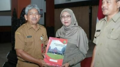 Foto : Prokopim / Edy Soepriyanto menyerahkan SK pensiunan kepada 104PNS TRENGGALEK MAKNAJATIM – 104…