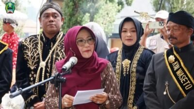 Foto : Prokopim Mgt / Bupati Magetan Nanik Sumantri saat menyampaikan pesan saat upacara Labuhan…
