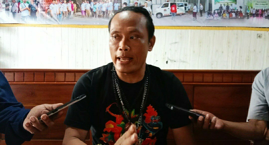 Foto : Boby / Trimo Dwi Cahyono Ketua Relawan Suket Teki Trenggalek saat wawancara dengan awak media