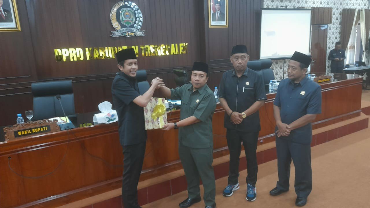Dalam rapat paripurna DPRD, Kamis, (22/9/2025) Wakil Bupati Syah Mochamad Natanegara, menyerahkan nota penjelasan Ranperda APBD tahun anggaran 2026, kepada DPRD Trenggalek.